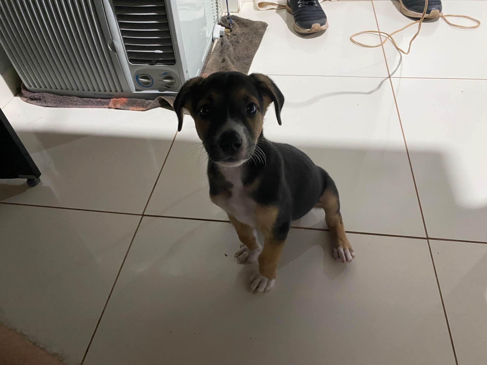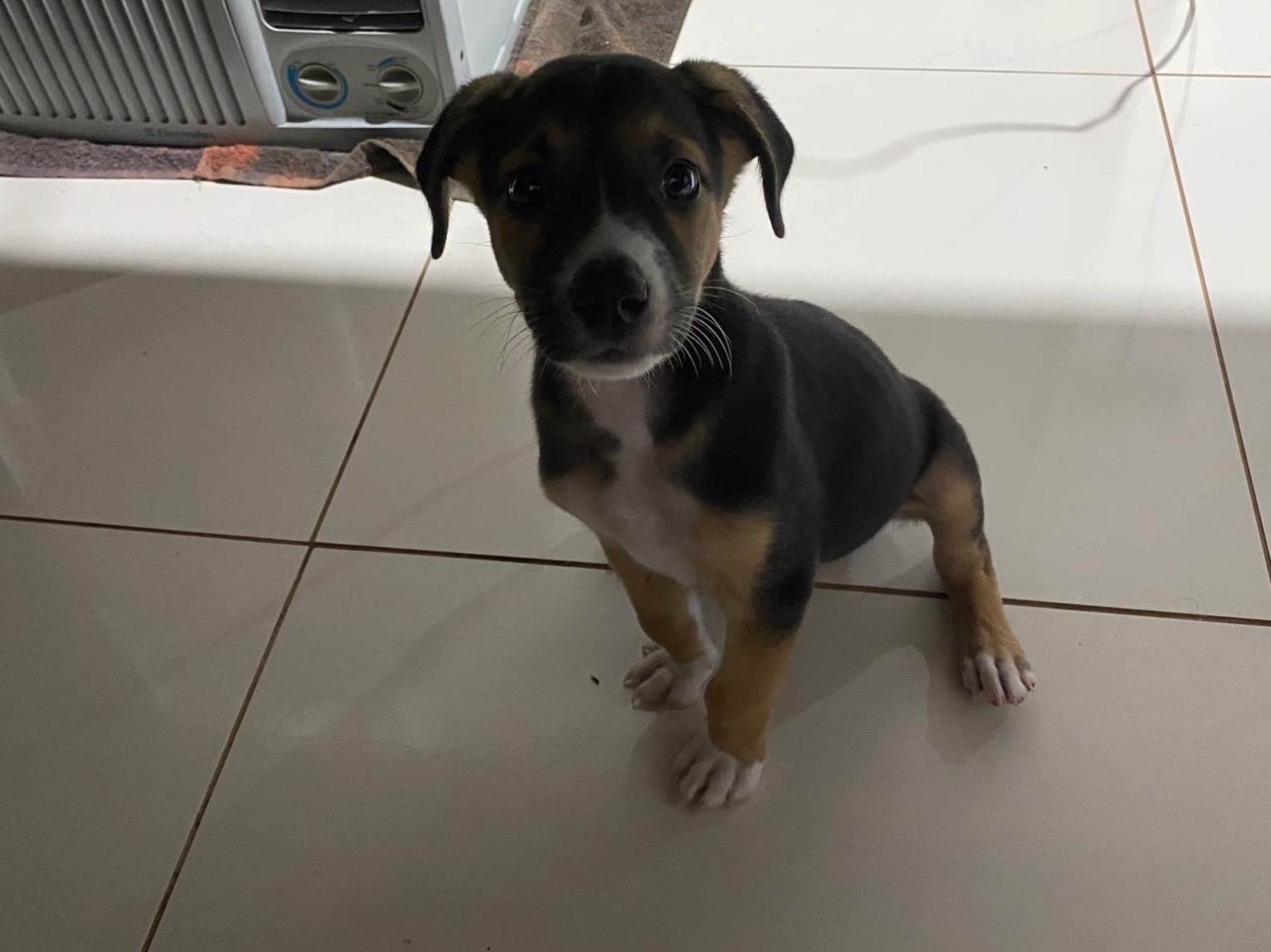 Cachorro médio, 2 a 6 meses, SRD-ViraLata, cor Preta/Marrom.