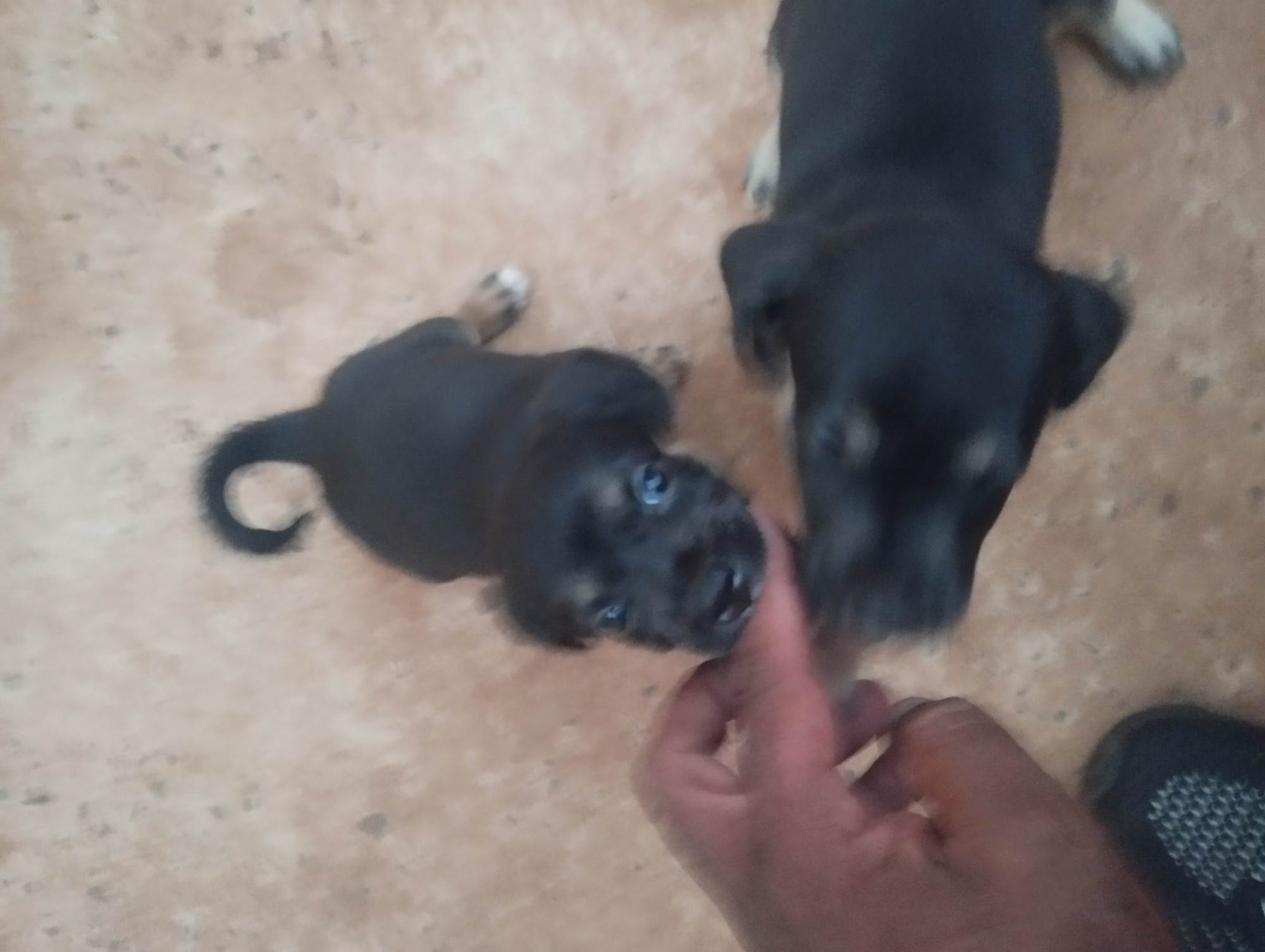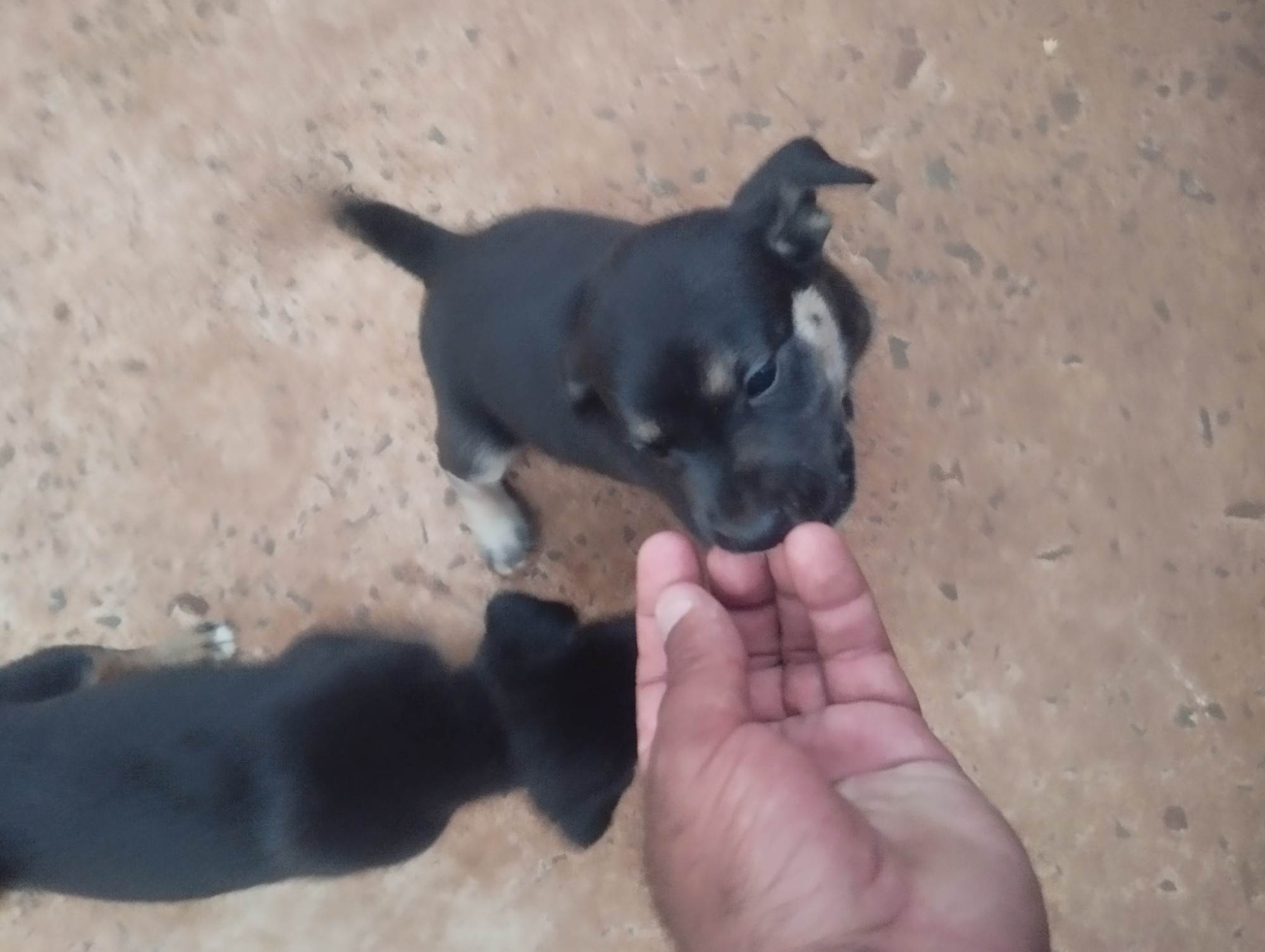 Cachorro pequeno, 2 a 6 meses, SRD-ViraLata, cor Branca/Preta.