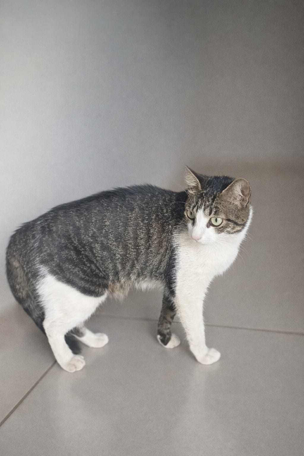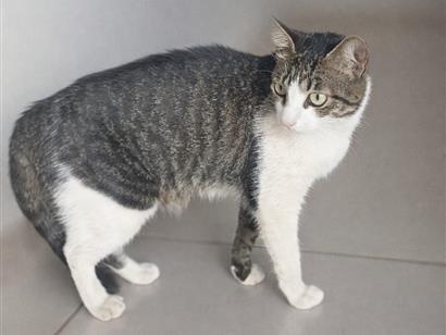 Gata média, 1 ano, SRD-ViraLata, cor Branca,Cinza.