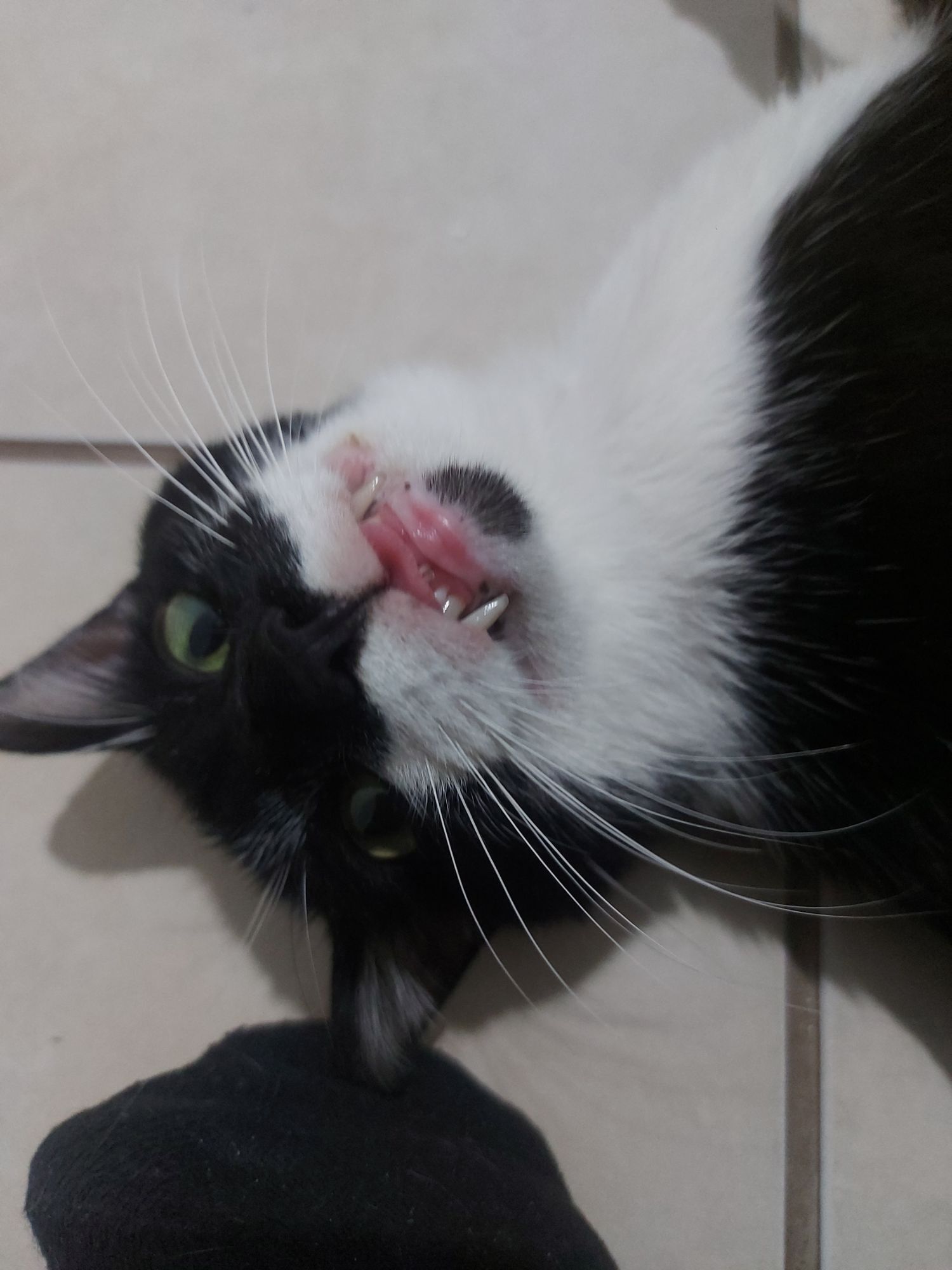 Gato pequeno, 5 anos, SRD-ViraLata, cor Branca/Preta.